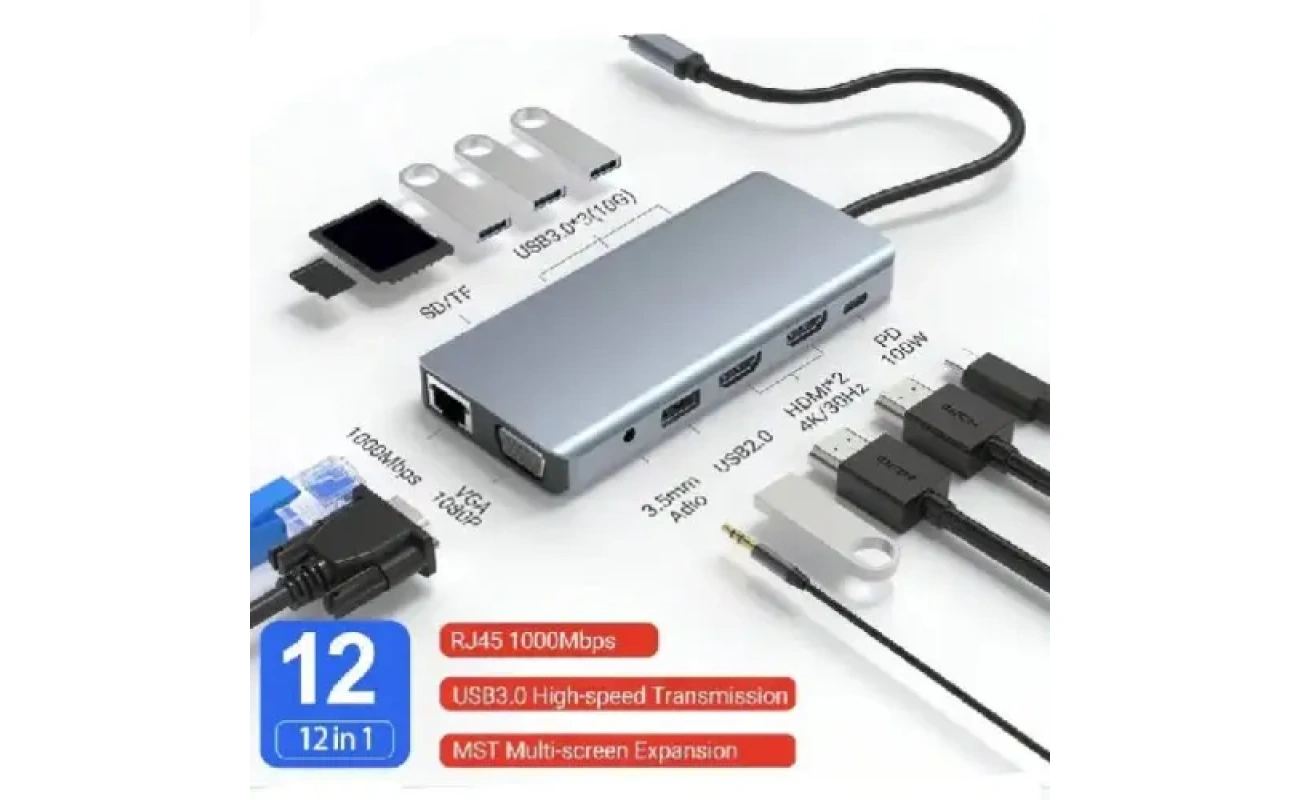 Type-c To HDTV 12 In 1 Hub Adapter