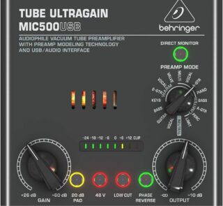 Behringer TUBE ULTRAGAIN MIC500USB Audiophile Vacuum Tube Preamplifier with Preamp Modeling Technology and USB/Audio Interface