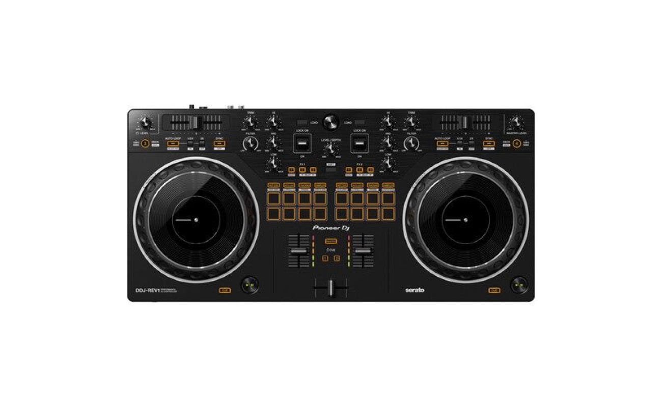 The Pioneer DDJ-REV1 is a versatile DJ controller designed for Serato DJ software. Perfect for beginners and pros alike, it features responsive jog wheels, performance pads, and intuitive layout for smooth mixing, scratching, and live performance. Elevate your DJ sessions with a controller built for creativity and precision.