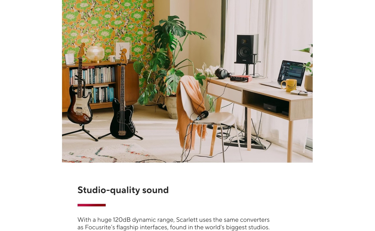 🎚️ 2 Scarlett Mic Preamps – Industry-leading clarity and precision for vocals and instruments.